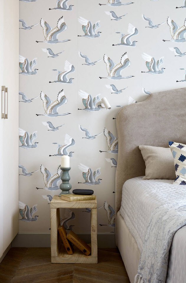 Нейтральный и немасштабный сюжет росписи на стене в изголовье кровати