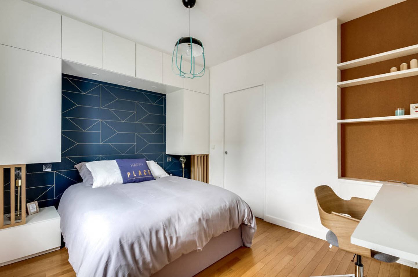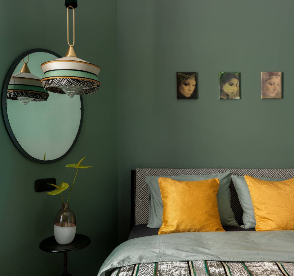 Так как же выбрать цвет для маленькой спальни? Лучший выбор — покрасить одну стену в насыщенный цвет, поэтому создайте цветовой акцент. Если комната узкая (например, в ширину кровати), но длинная, рекомендуется покрасить стену за кроватью в темный цвет, например, темно-синий, изумрудный, антрацитовый, бордовый или черный. Такая процедура оптически «укоротит» спальню, придаст ей лучшие пропорции и сделает ее более уютной. В высокой, но маленькой спальне можно покрасить потолок в яркий цвет. Такой интерьер будет «падать» и станет более приятным в использовании.