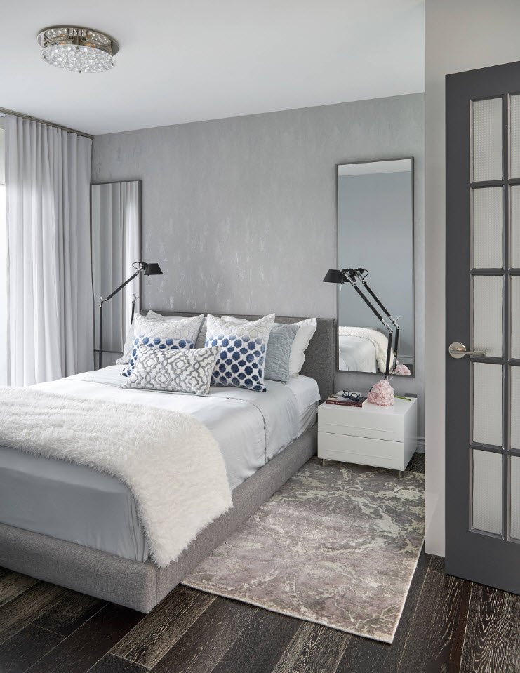 - Дизайнеры советуют дополнять интерьер спальни в темных тонах большим количеством зеркал. Помимо основной функции и способности визуально расширять пространство, они будут играть роль эффектного аксессуара.