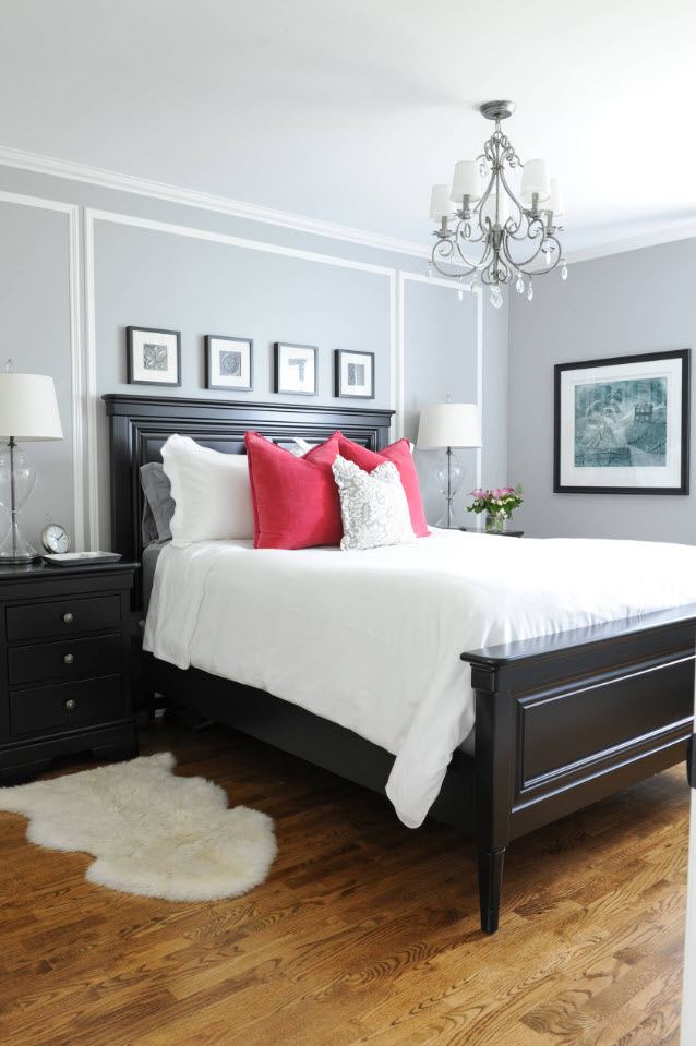 Количество темных оттенков и предметов зависит от размеров спальни. Если вы планируете создать интерьер большой спальни в темных тонах, то здесь можно использовать любое количество мрачных оттенков – это никак не повлияет на визуальное восприятие пространства и атмосферу в помещении.