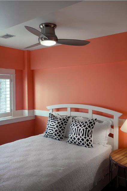 - Лучшее цветовое решение для спальни – сочетание белого с 1-2 другими цветами. Классика колористической гаммы для спальной комнаты – терракотовый цвет.