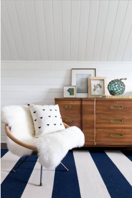 Широкая горизонтальная полоска на коротких стенах тоже сделает форму помещения ближе к квадратной. Если сделать полосатыми все стены, помещение визуально увеличится, но потолок будет казаться ниже.