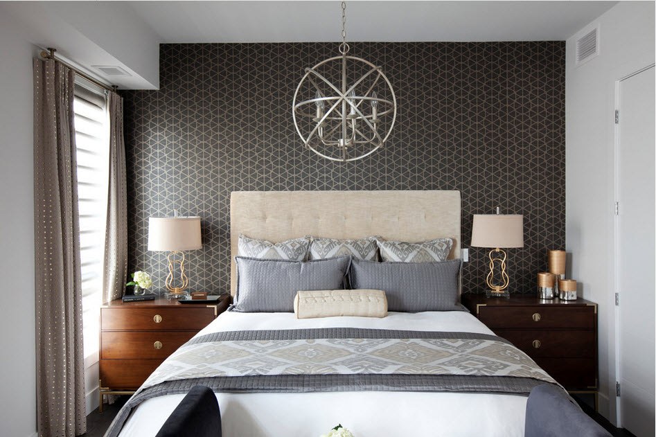 Использовать полоски и квадратные мотивы можно на шторах, покрывале, обивке мебели. Нужно избегать их направления вдоль длинных стен спальни.