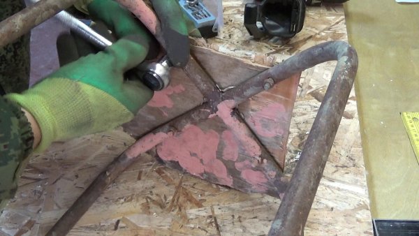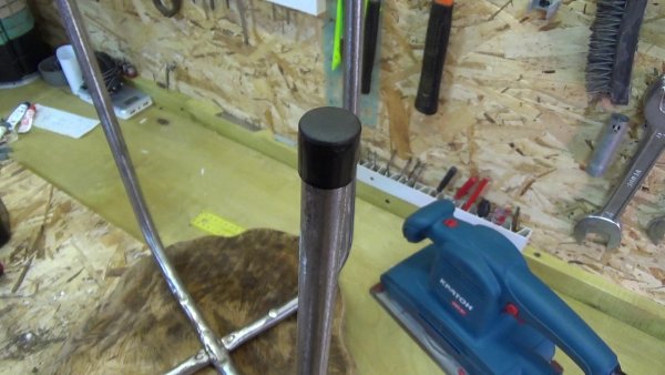 Далее при помощи УШМ полностью зачищаем металлическую часть стула. Я прошелся несколькими наждачками, что бы практически заполировать металл. Ножки решил не красить. Хотя в дальнейшем возможно и покрашу.