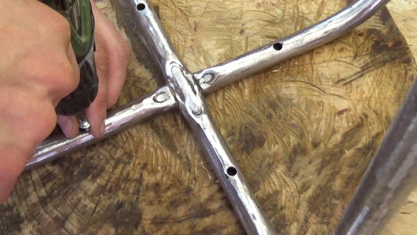 Далее сделал отверстия под саморезы и прикрутил ножки.