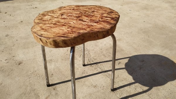 После того как сиденье готово, необходимо обработать его края, особое внимание уделяется углам, они не должны быть острыми. Если сиденье просохло, его можно либо залакировать, как и всю табуретку, либо обтянуть искусственной кожей, специальной тканью для мебели