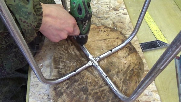 Часто для ремонта табуретки, у которой повреждено сиденье, можно использовать не только доски, но и уже готовый щит. Его можно вырезать из большого куска фанеры или иных подходящих материалов