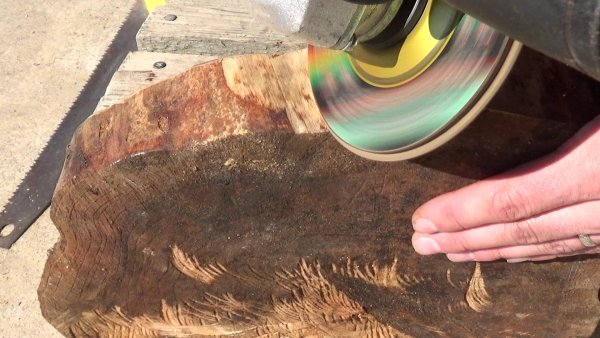 Далее при помощи УШМ снял все неровности. До гладкого блеска решил не зачищать. Такой рисунок на дереве мне больше нравиться.